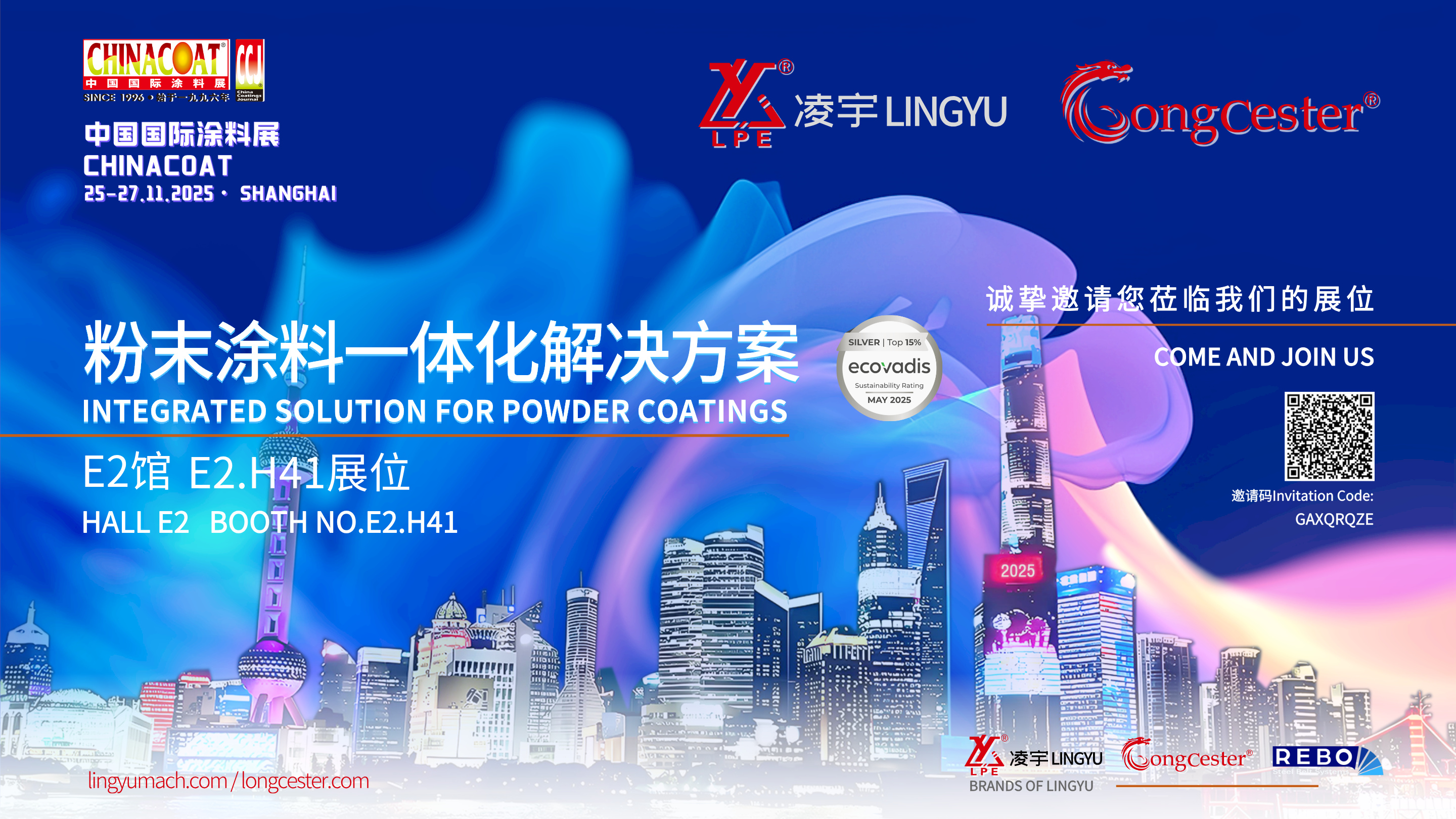 在即將于2025年11月25日至27日舉辦的中國(guó)國(guó)際涂料展(ChinaCoat 2025)上,上海新國(guó)際博覽中心(SNIEC)將再次成為全球涂料行業(yè)的焦點(diǎn)舞臺(tái)。 凌宇&龍彩將攜最新技術(shù)與創(chuàng)新成果亮相E2.H41展位,以獨(dú)特的展位設(shè)計(jì)與豐富的展品展示,吸引來(lái)自世界各地行業(yè)專家與客戶的關(guān)注。 展會(huì)期間,凌宇將重點(diǎn)展示其自動(dòng)化集成生產(chǎn)線、混合機(jī)、擠出機(jī)、壓片機(jī)、磨粉機(jī)、邦定機(jī)及實(shí)驗(yàn)室設(shè)備等核心產(chǎn)品,并提供詳盡的技術(shù)資料與應(yīng)用方案。公司將派出經(jīng)驗(yàn)豐富的技術(shù)團(tuán)隊(duì)現(xiàn)場(chǎng)答疑,與參觀者深入交流,共同探討粉末涂料生產(chǎn)的最新趨勢(shì)與工藝優(yōu)化方向,挖掘合作新契機(jī)。我們誠(chéng)摯邀請(qǐng)您蒞臨E2.H41展位,共同見(jiàn)證粉末涂料智能制造的新高度。